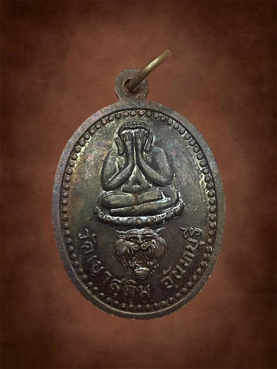 เหรียญหลังปิดตานั่งหัวสือหลวงพ่อสมชาย วัดเขาสุกิม จันทบุรี