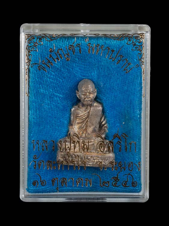 รูปหล่อหลวงปู่ทิมครับรุ่นมหาปราบเนื้อเงินอุกผงพราย พร้อมกล่องเดิมครับ ปี 2546