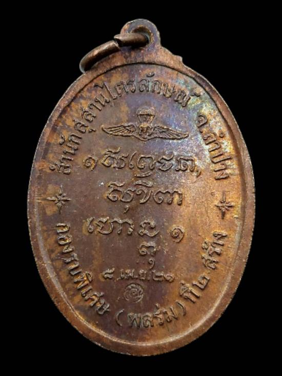 เหรียญหลวงพ่อเกษม เขมโก กองรบพิเศษพลร่มที่ 2 ปี 2521 เนื้อทองแดง ตอกโค๊ต