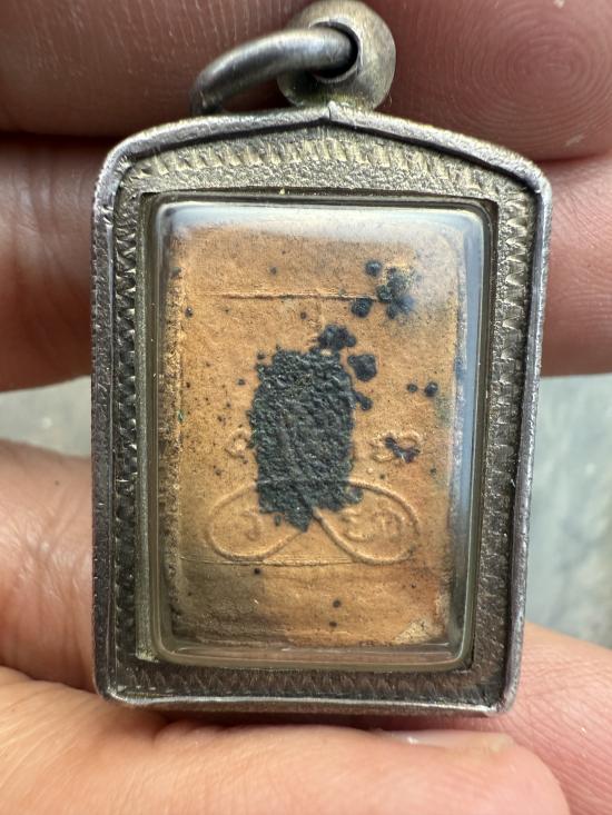 ด้านหลังคราบสีดำๆ ที่ปรากฎคือ ผงตะไบพระกริ่งวัดสุทัศน์ ที่ผสมอยู่ในเนื้อพระ เมื่อนำพระพิมพ์ไปเผาไฟ ผงตะไบจึงละลายออกมาคลุมผิวพระอย่างที่เห็น