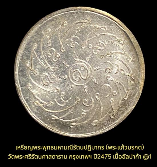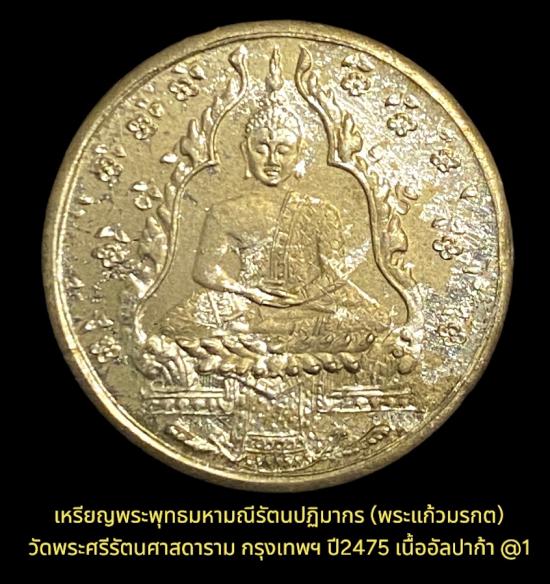 เหรียญพระพุทธมหามณีรัตนปฏิมากร (พระแก้วมรกต) วัดพระศรีรัตนศาสดาราม เนื้ออัลปาก้า กรุงเทพฯ ปี2475 เคาะเดียว