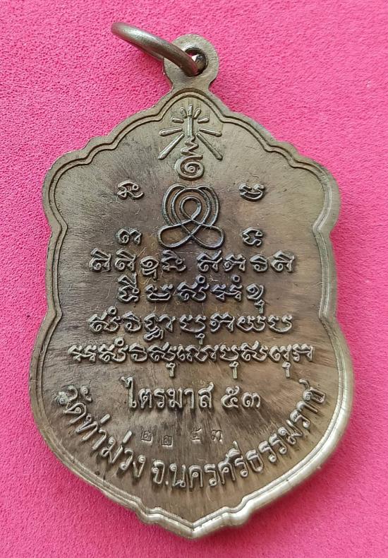 เหรียญเสมาเนื้อฝาบาตร ลพ.บุญให้ วัดท่าม่วง ปากพูน นครศรีฯ รุ่นไตรมาส๕๓ โค๊ตดอกบัว-เลข สวยชัด รับประกันครับ