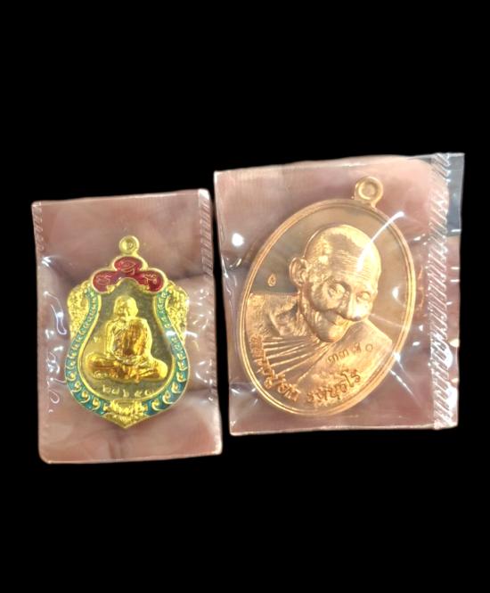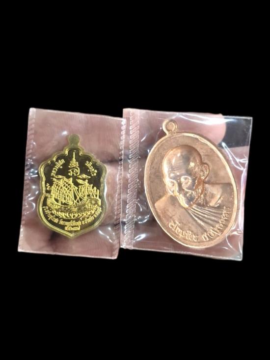 เคาะเดียว 2 องค์ครับ เหรียญเสมาน้อยลงยา + เหรียญไตรมาสหลังแบบ หลวงปู่ฮก รตินธโร วัดราษฏร์เรืองสุข ชลบุรี