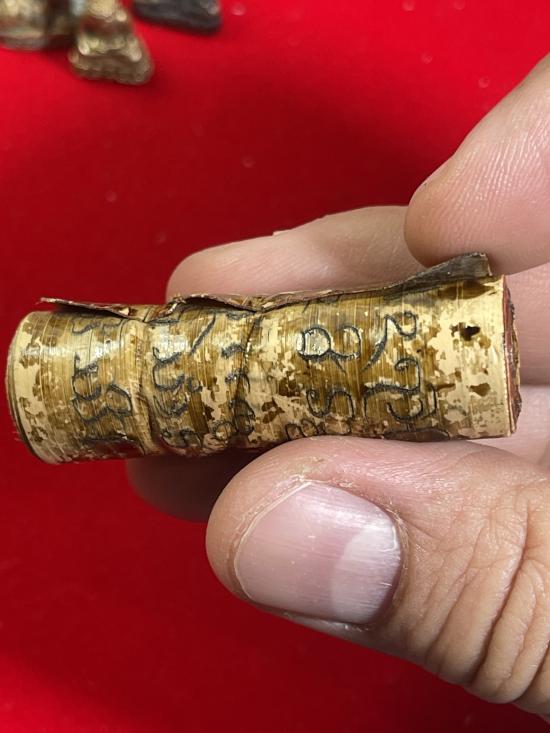 ตะกรุดใบลานเก่า มีจารอักขระไม่ทราบที่ครับ |