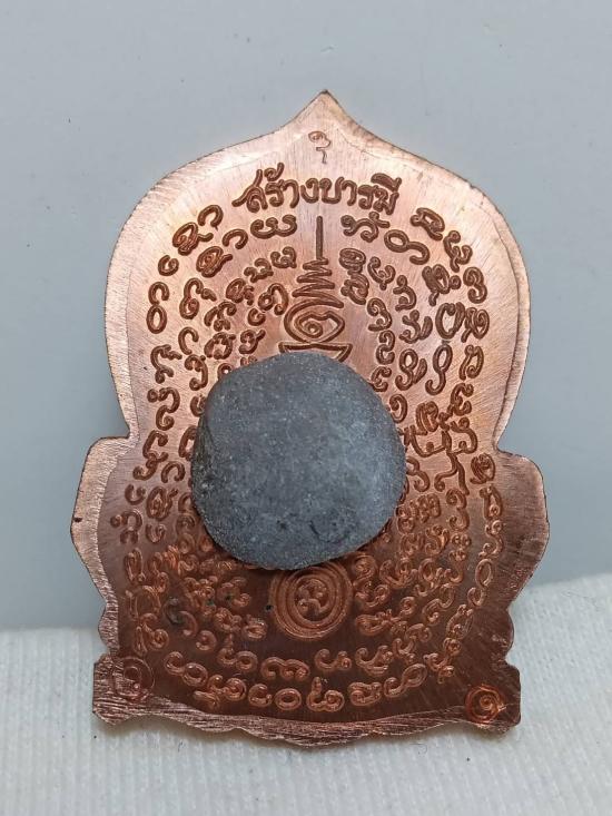 รายละเอียดพระ : เนื้อทองแดง ด้านหลังอุดมวลสาร พร้อมกล่องเดิม