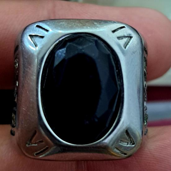 แหวนไซส์ใหญ่ไม่ทราบเนื้อหัวเป็นนิลดำหนักมาก32กรัม