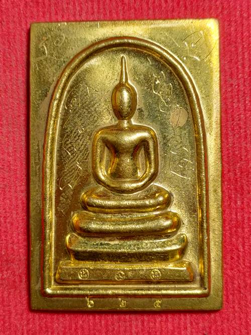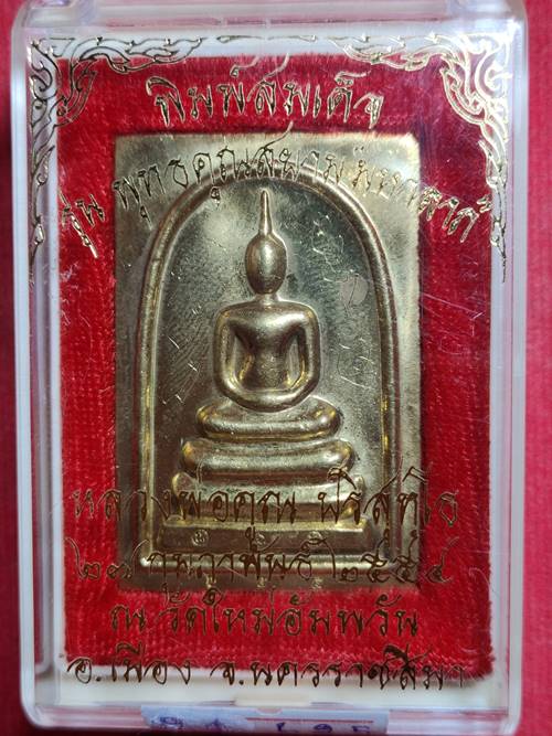 พระพิมพ์สมเด็จหลังรูปเหมือน หลวงพ่อคูณ รุ่น พุทธคุณสยามมหาลาภ ออกวัดใหม่อัมพวัน ปี 54 เนื้อ ทองฝาบาตร หมายเลข 625 มีจาร เคาะเดียวแดง