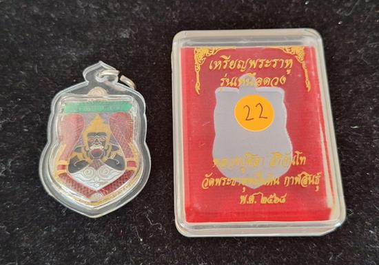 เหรียญพระราหูอมจันทร์ หลวงปู่ศิลา เมตตาอธิษฐานจิต รุ่นเหนือดวง เนื้ออัลปาก้าลงยา เลี่ยมกรอบพร้อมใช้ No.22 |