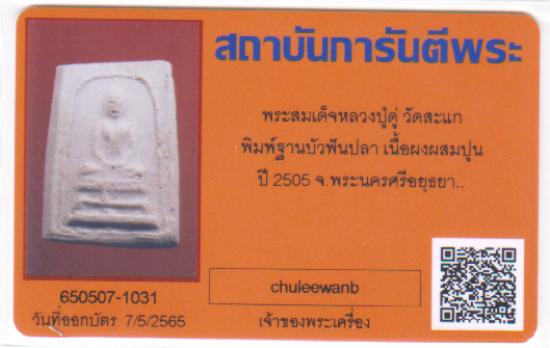 สมเด็จ พิมพ์ฐานบัวฟันปลา ปี2505 หลวงปู่ดู่ วัดสะแก พร้อมบัตรรับรอง G-pra |
