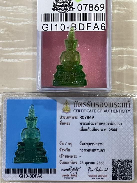 (เคาะแดง1700) +บัตรสมาคม พระแก้วมรกตลอยองค์ หลวงพ่อถาวร วัดปทุม |