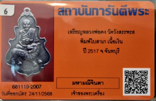 เหรียญใบสาเก รุ่นแรก เนื้อเงิน จารนะใต้ท้องเสือ(นิยม) หลวงพ่อคง วัดวังสรรพรส พร้อมบัตรรับรองครับ