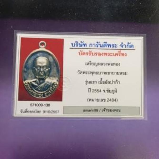 ชื่อพระเครื่อง 100 เดียว หลวงพ่อทอง รุ่นแรก อัลปาก้า ยันต์แปด พระสวย 3 หลัก#2484 กล่องเดิม ตามรูปขยาย