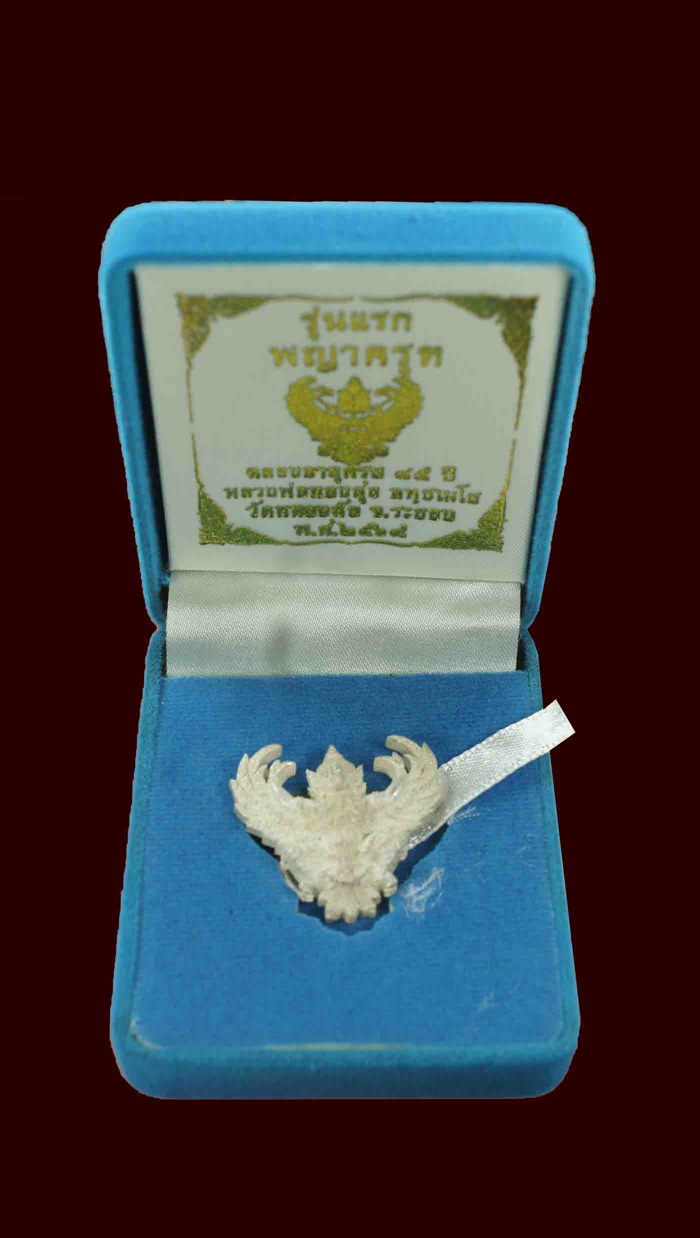 แชม์ที่ 1 งานระยอง ปี 2566 *** พญาครุฑ รุ่นแรก ฉลองอายุครบรอบ 85 ปี เนื้อเงินซาติน หมายเลข 2 หลัก **92** หลวงพ่อทองสุข วัดหนองฆ้อ ระยอง ปี 2568 พร้อมกล่องเดิมจากวัด ( ขนาดความสูง 3 ซม. กว้าง 3.5 ซม. )