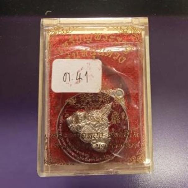 ชื่อพระเครื่อง 100 เดียว หลวงพ่อทอง ราหููหนุนดวง เงิน ลงยาอดง พระสวย เลขสวย 2 หลัก#41 กล่องเดิม ตามรูปขยาย