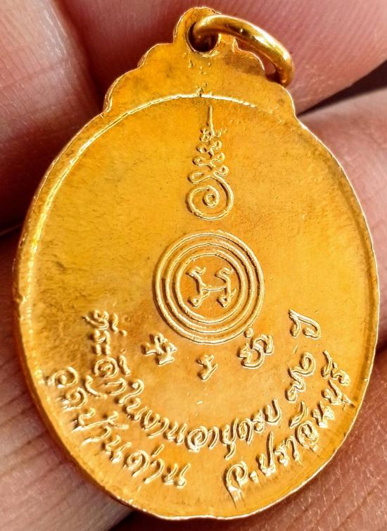 เหรียญงูเล็ก หลวงพ่อเอีย วัดบ้านด่าน ที่ระลึกในงานอายุครบ 72 ปี เนื้อกะไหล่ทอง ลงยาแดง