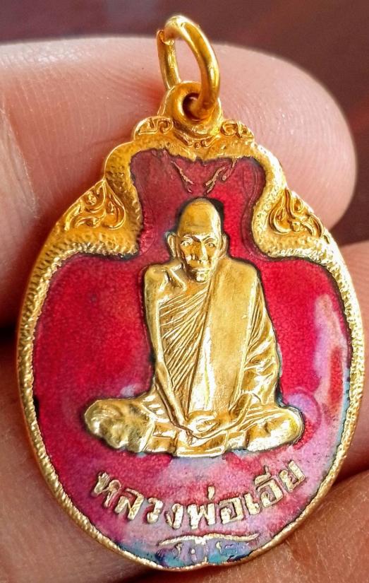 เคาะเดียวแดง.....เหรียญงูเล็ก หลวงพ่อเอีย วัดบ้านด่าน ที่ระลึกในงานอายุครบ 72 ปี เนื้อกะไหล่ทอง ลงยาแดง