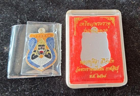 เหรียญพระราหูอมจันทร์ รุ่นเหนือดวง เนื้ออัลปาก้าลงยา ตอกเลข+ตอกโค๊ต พร้อมกล่อง