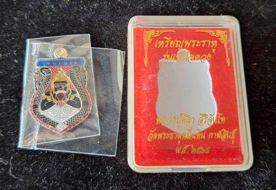 เหรียญพระราหูอมจันทร์ รุ่นเหนือดวง เนื้ออัลปาก้าลงยา ตอกเลข+ตอกโค๊ต พร้อมกล่อง |