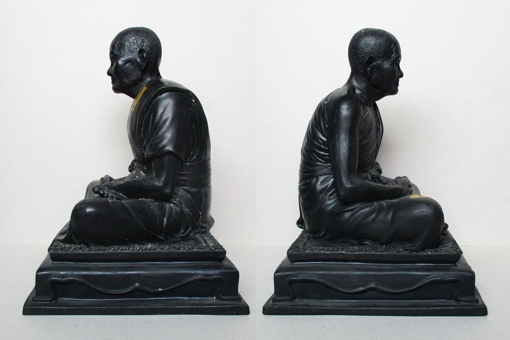 พระครูนนทกิจพิบูลย์ ( เก๋ ถาวโร ) วัดปากน้ำ จ.นนทบุรี หน้าตัก 9 นิ้ว เนื้อโลหะรมดำ ใต้ฐานอุดปูนฝังตลับบบรรจุมวลสารและเส้นเกศา สภาพผิวแห้งหิ้งๆ !!