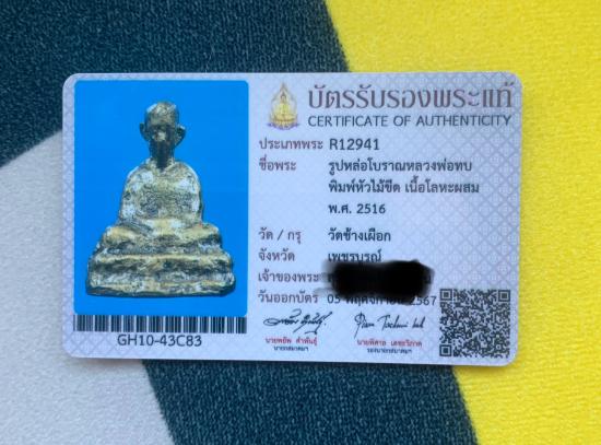 หล่อโบราณหลวงพ่อทบ หัวไม้ขีดปี16 วัดช้างเผือก