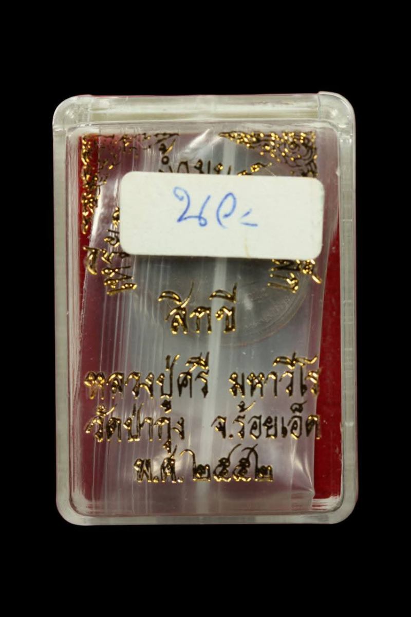 เหรียญทำน้ำมนต์ หลวงปู่ศรี มหาวีโร รุ่น๓ ปี๒๕๕๒ พิมพ์รูปไข่เล็ก ขนาดเหรียญสูง 2 ซม. กว้าง 1.7 ซม.พิมพ์กรรมการพระสิกขี ถวายหลวงปู่ศรีอธิฐานจิตเมื่อ ๑๔ พฤศจิกายน จำนวนการสร้าง เนื้อทองคำ ๒๖ เหรียญ ,เงิน ๑๔๔ เหรียญ ,นวะโลหะ ๓๕๓ เหรียญ ,เนื้อสตางค์ ๕,๑๕๑ เหรียญ ตอกโค๊ตทุกเหรียญ