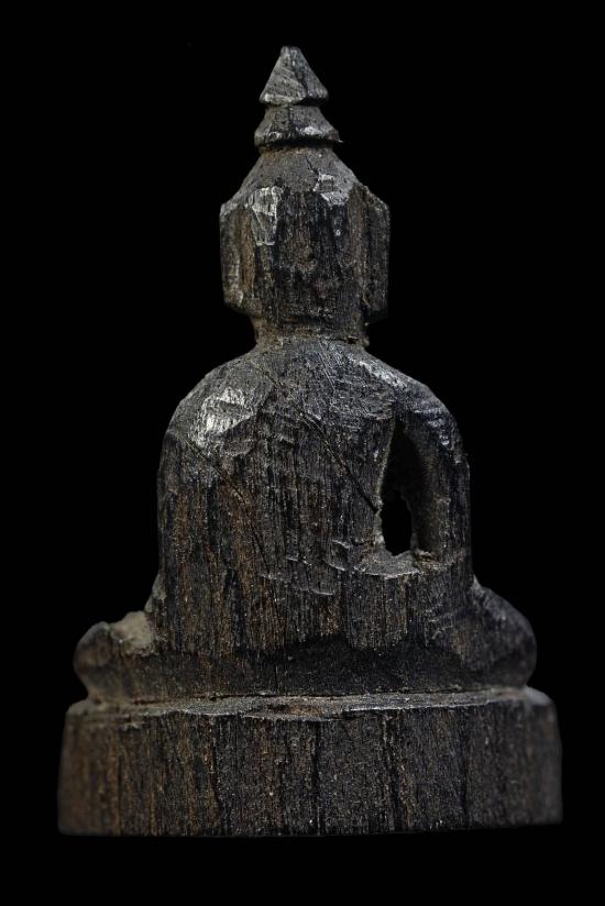 พระไม้แกะสลัก เนื้อดำ งานเก่าๆ "ขนาด ฐานกว้าง 1.7 cm สูง 3 ซม."