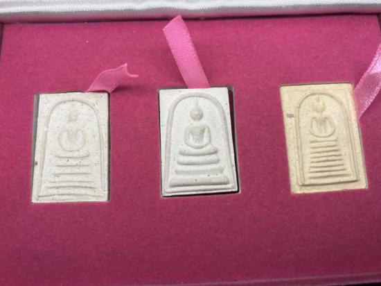 มงคลอนุสรณ์ มวลสาร สมเด็จพระพุฒาจารย์โต พรหมรังสี นำมาจัดสร้าง รุ่น 9 สมเด็จ (ตราปั้มหลังชัดเจน) ชุด รัตนตรัย 3พิมพ์ ( วัดระฆัง , บางขุนพรหม , เกษไชโย ) วัดสระเกศฯ วัดภูเขาทอง ปี55 พร้อมกล่องเดิม รับประกันแท้ตามกฎ