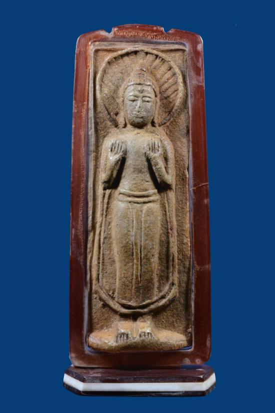 วัดใจ 290.พระเนื้อดินพิมพ์ยืนปางประทานพร ขนาดตั้งบูชา เกจิเก่าๆ ผิวหิ้ง มีอายุพอสมควร . |