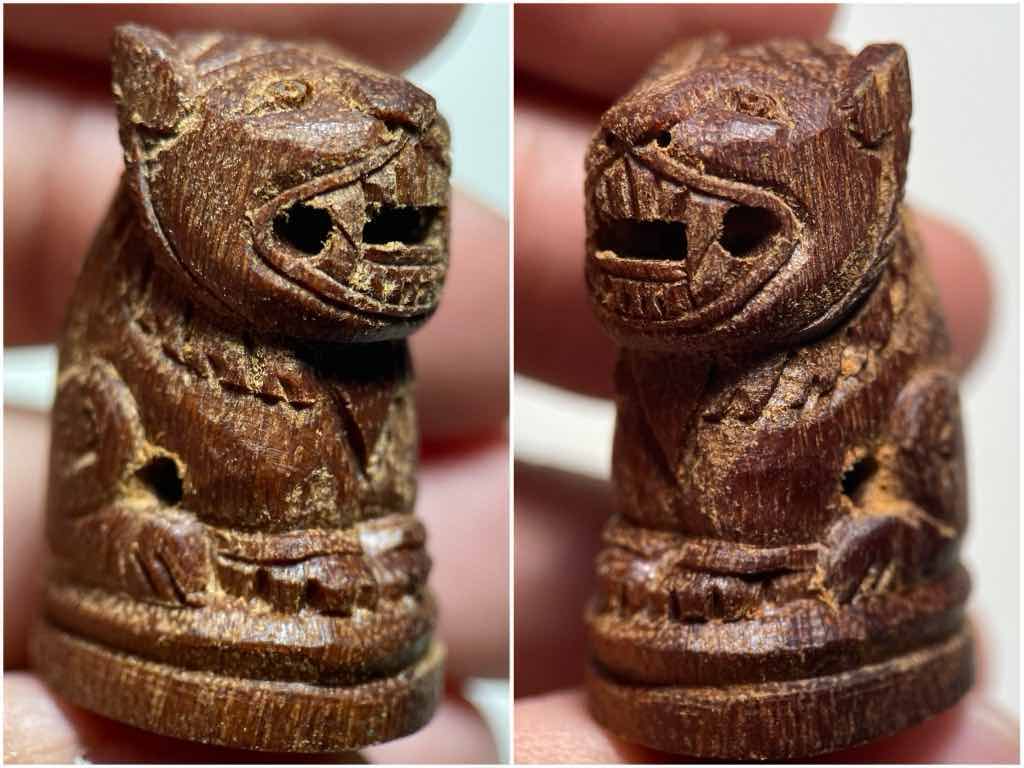 550.- ems เสือไม้เสาเอกกุฎิ หลวงพ่อวงษ์ วัดปริวาส สวยเดิมคากล่อง ใต้ฐาน มีจาร หมายเลข ๔๐๘ แกะจากไม้เสาเอกกุฎิ ที่หลวงพ่อวงษ์ สวดมนต์ภาวนา เช้า-เย็น ทุกวัน จนถึงสิ้นอายุขัย หายาก