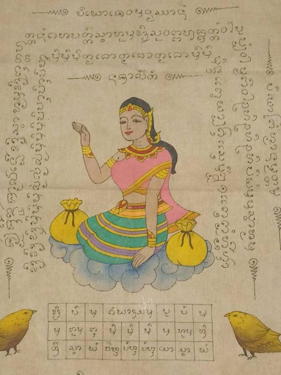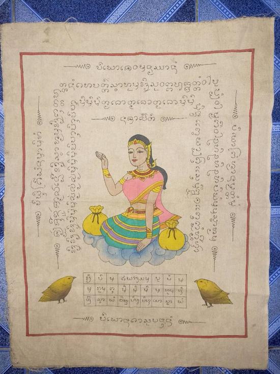 ผ้ายันต์แม่นางกวัก มนต์เสน่ห์แห่งเครื่องราง งานเขียนมือ ล้วนๆ ยุคใหม่ ขนาด 44*57 ซม. **เป็นผ้ายันต์สาย เมตตาโชคลาภค้าขาย |