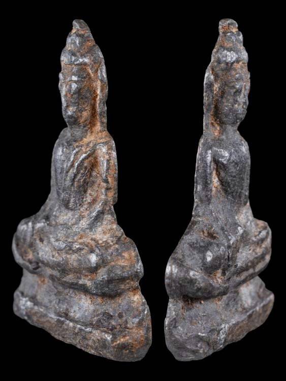 พระอู่ทอง กรุวัดเทวสังฆาราม พิมพ์ฐานผ้าทิพย์ (เนื้อชินตะกั่ว) จ.กาญจนบุรีสวยมากหน้าตาคมชัดมากแดงต่ำ