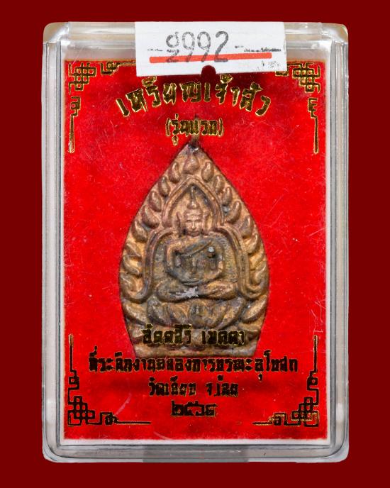 เหรียญเจ้าสัว หลวงปู่สมศรี อัตตสิริ วัดป่าเวฬุวนาราม จ.เลย เนื้อทองแดง ออกวัดเลียบ เลข 992 |