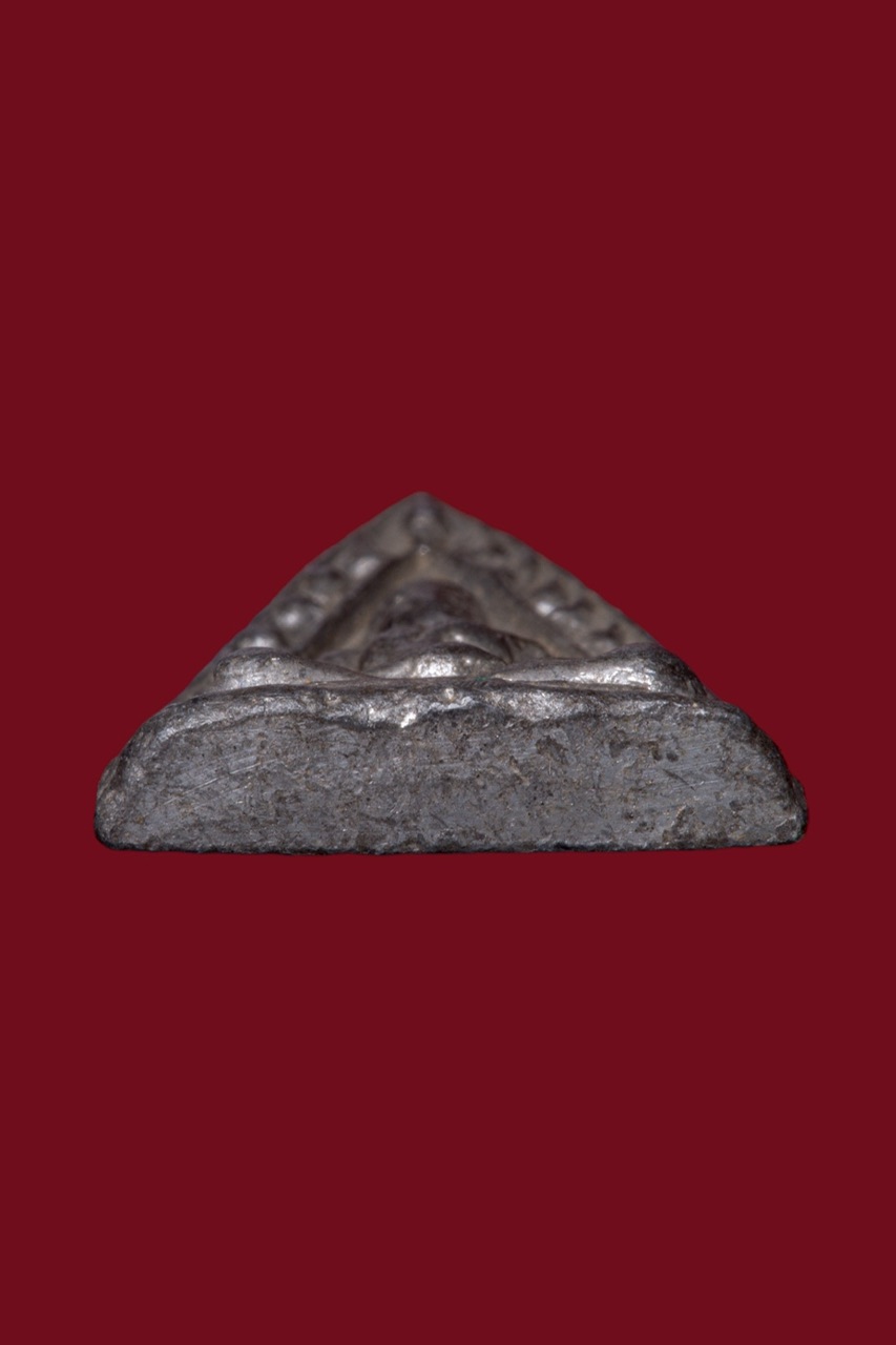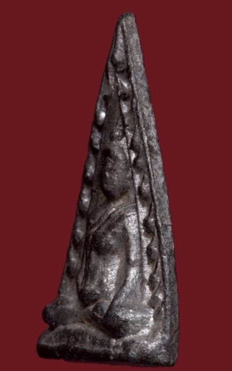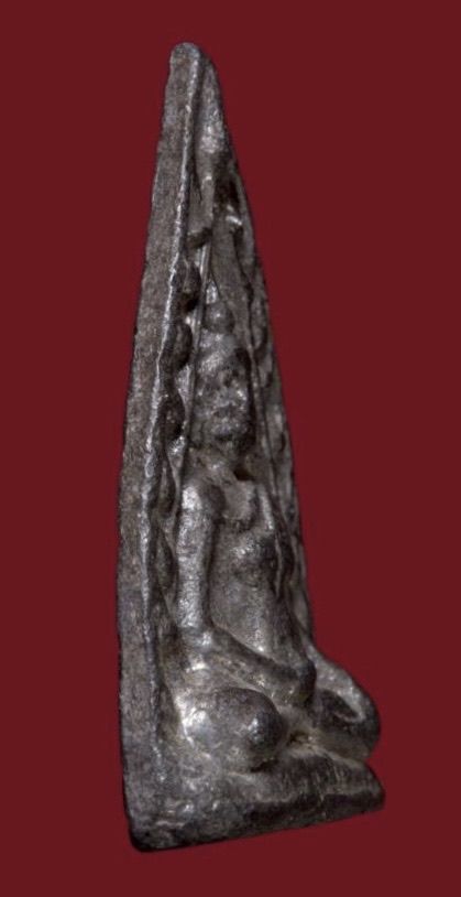 พระพิมพ์สะดุ้งกลับ กนกข้างเม็ด หลวงปู่บุญ วัดกลางบางแก้ว เนื้อชินนกเขาเปล้า |
