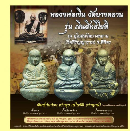 รูปหล่อหลวงพ่อเงิน บางคลาน รุ่นเงินสิทธิโชติ พิมพ์นิยมก้นถ้วย เบ้าทุบ เทในพิธี(นำฤกษ์) เนื้อทองดอกบวบ ปี 2557 พิธีใหญ่ นัมเบอร์1111 สวยเดิมๆรับประกันตามกฎค่ะ |