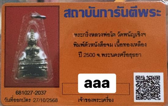 พระกริ่ง หลวงพ่อโต วัดพนัญเชิง ปี 2500