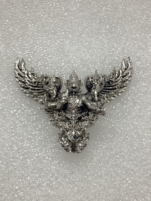 พญาครุฑมังรายศาสตร์ เศรษฐีอนันตทรัพย์ พระอาจารย์วิรุต วัดสันมะเหม้า จ.เชียงราย เนื้อซาตินเงิน พิมพ์เล็ก สูง 3 ซ.ม. กล่องเดิม |