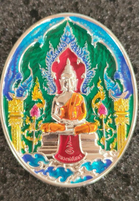 เหรียญหลวงพ่อโสธร รุ่น"ประวัติศาสตร์ครบรอบ 255 ปี"วาระพิเศษ(ซีรี่5 วัดสร้าง)วัดโสธรวราราม ฉะเชิงเทรา เนื้อชุบเงิน ลงยาเขียว ลงยาซุ้ม ลงยาองค์พระ หมายเลข ๕๘ พร้อมกล่อง เหรียญสวยมากคับ