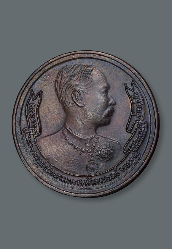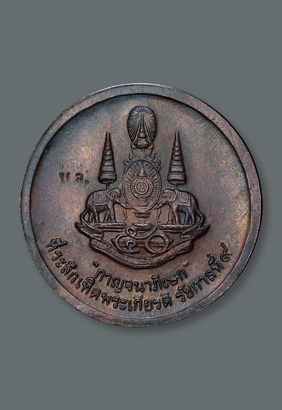 เหรียญพระบาทสมเด็จพระปรมินทรมจุฬาลงกรณ์ พระจุลจอมเกล้าเจ้าอย ู่หัว ( รัชกาลที่ 5 ) รุ่น กาญจนาภิเษก ร.9 ( เนื้อทองแดง ) ป ลุกเสกโดย หลวงพ่อคูณ พ.ศ.2539 ( กล่องเดิม )