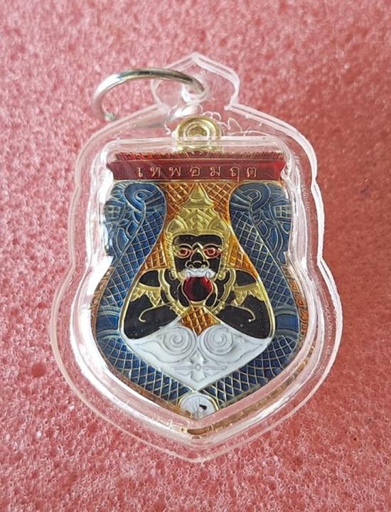 เหรียญพระราหูอมจันทร์ หลวงปู่ศิลา เมตตาอธิษฐานจิต รุ่นเหนือดวง เนื้อทองเหลืองลงยา เลี่ยมกรอบพร้อมใช้ No.33