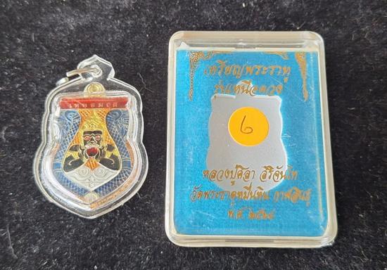 เหรียญพระราหูอมจันทร์ หลวงปู่ศิลา เมตตาอธิษฐานจิต รุ่นเหนือดวง เนื้อทองเหลืองลงยา เลี่ยมกรอบพร้อมใช้ No.6