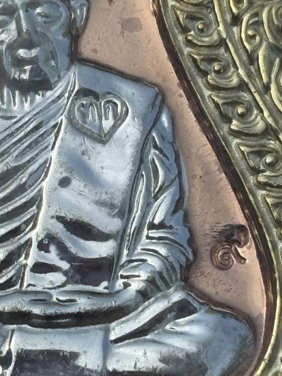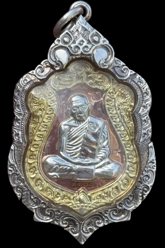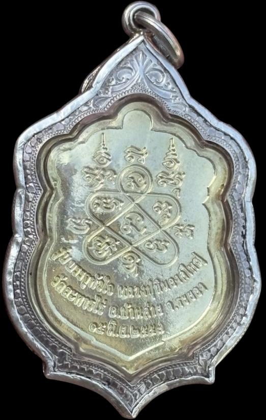 เหรียญเสมา รุ่นเสาร์ 5 บรรจุหัวใจหลวงปู่ทิมองค์ใหญ่ วัดละหารไร่ อ.บ้านค่าย จ.ระยอง เนื้อสามกษัตริย์ หมายเลข1183 เลี่ยมเงินยกซุ้มหัวสิงห์หนาๆ