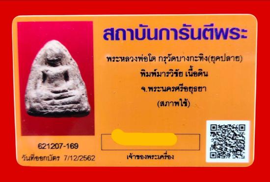 พระหลวงพ่อโต กรุวัดบางกระทิง พิมพ์มารวิชัย พร้อมบัตรG-PRA