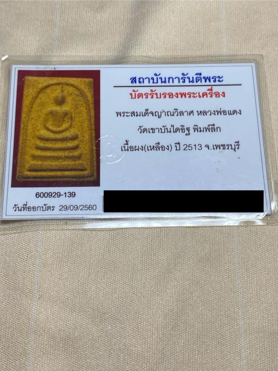 พระสมเด็จญาณวิลาศ หลวงพ่อแดง วัดเขาบันไดอิฐ พิมพ์ลึก เนื้อผง(เหลือง) ปี2513 จ.เพชรบุรี เลี่ยมทองพร้อมบัตรรับรองฯ โอนเงินแล้วแจ้งรายละเอียดการโอนทาง Mailbox ของเวปจี ได้รับแจ้งว่าโอนเงินแล้วจะส่งพระภายใน 3 วันทำการ