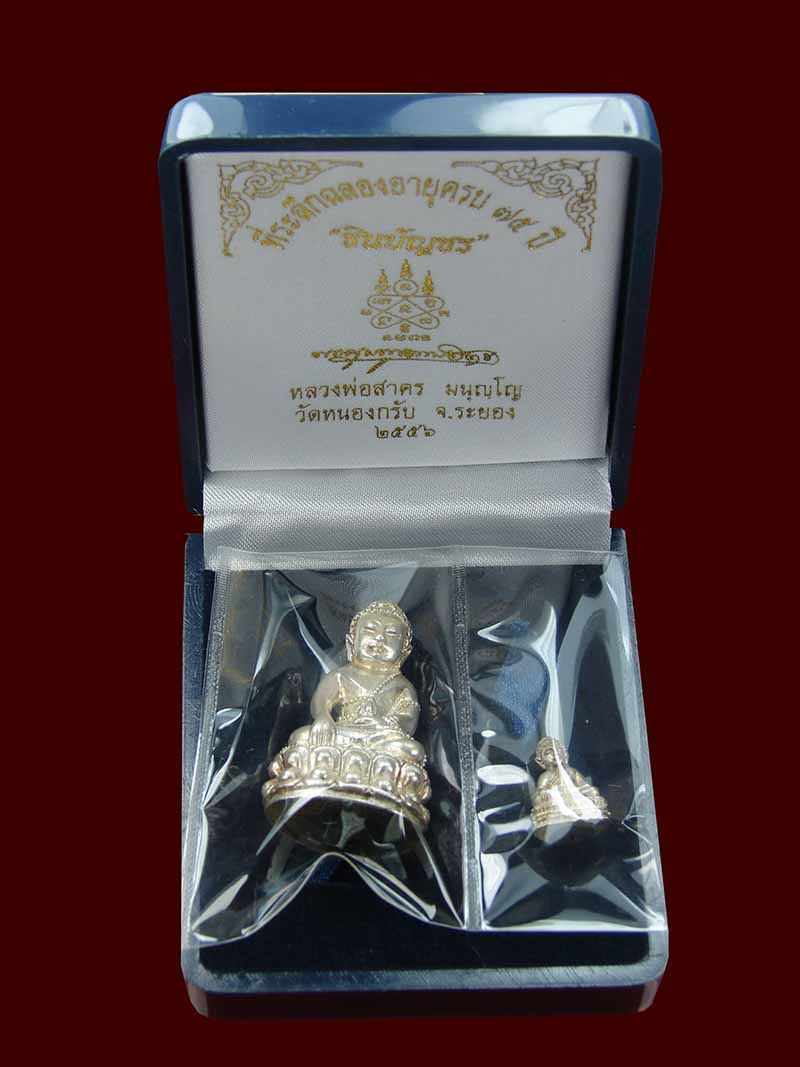 พระกริ่ง-พระชัยวัฒน์ชินบัญชร หลวงพ่อสาคร รุ่นสุดท้าย (เนื้อเงิน) กล่องเดิมจากวัดฯ