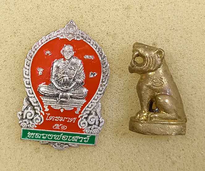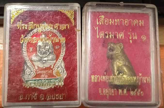 เหรียญไตรมาส ปี51 + เสือไตรมาส 50 รุ่น 1 หลวงพ่อเสาร์ วัดดอนหญ้านาง อยุธยา กล่องเดิม