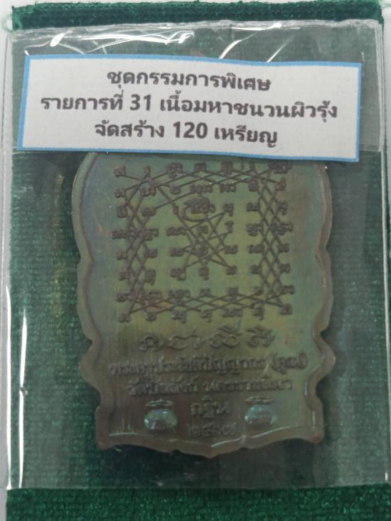 เหรียญนั่งพาน รุ่นรวยมหาเศรษฐี หลวงพ่อคูณ วัดบัลลังก์ นครราชสีมา เนื้อมหาชนวนผิวรุ้ง สร้าง120เหรียญ No.75