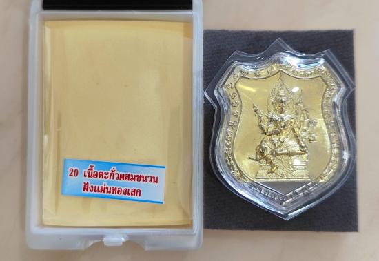เหรียญท้าวมหาพรหม รุ่นเจ้าสัวพันล้าน(บอย ท่าพระจันทร์) เนื้อตะกั่วผสมชนวนฝังแผ่นทองเสก เลขโค๊ต ๑๐๓๘ พร้อมกล่องเดิม