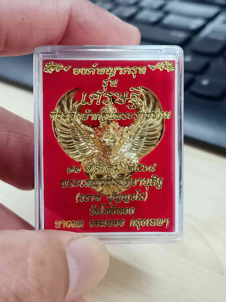 วัดใจ 150 G#2 ลอยองค์พญาครุฑเศรษฐี ที่ระลึกผ้ากฐินพระราชทาน 2568 หลวงพ่อวราห์ วัดโพธิทอง บางมด กรุงเทพ กะไหล่ทอง กล่องเดิม |