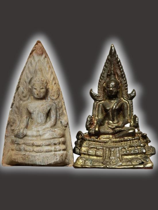 A4482.ยกคู่!! พระพุทธชินราช เนื้อดิน + รูปหล่อ ไม่ทราบที่ เคาะเดียวเเดง