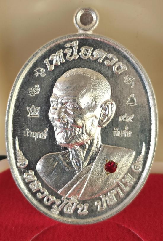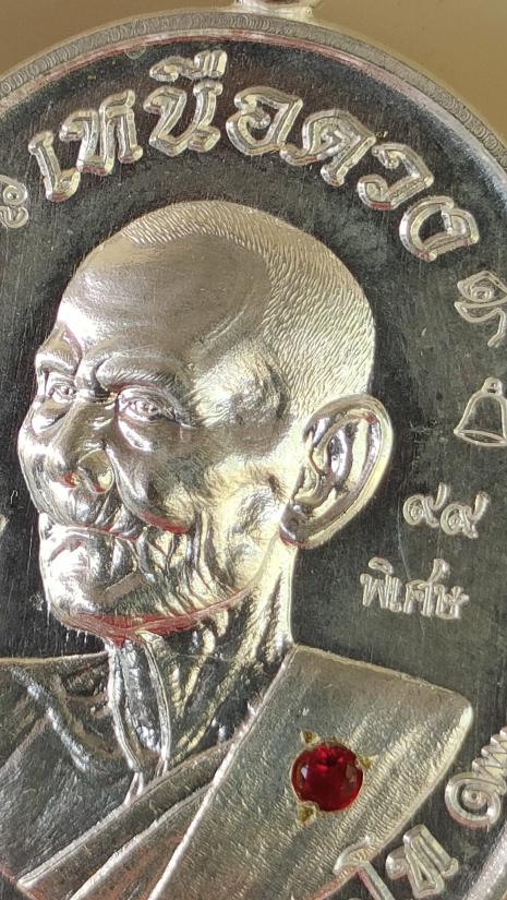 เหรียญหันข้าง"เหนือดวง" หลวงปู่ฝั้น ปสาโท วัดศรีถมอรัตน์(หน้าผา) เพชรบูรณ์ ชุดนำฤกษ์ เนื้อชุบจิวเวอรี่ ฝังพลอยแดง ตอก"รวมโค๊ต" หมายเลข ๙๙ พร้อมกล่อง เลขสวยน่าสะสมคับ (สร้าง10เหรียญ)